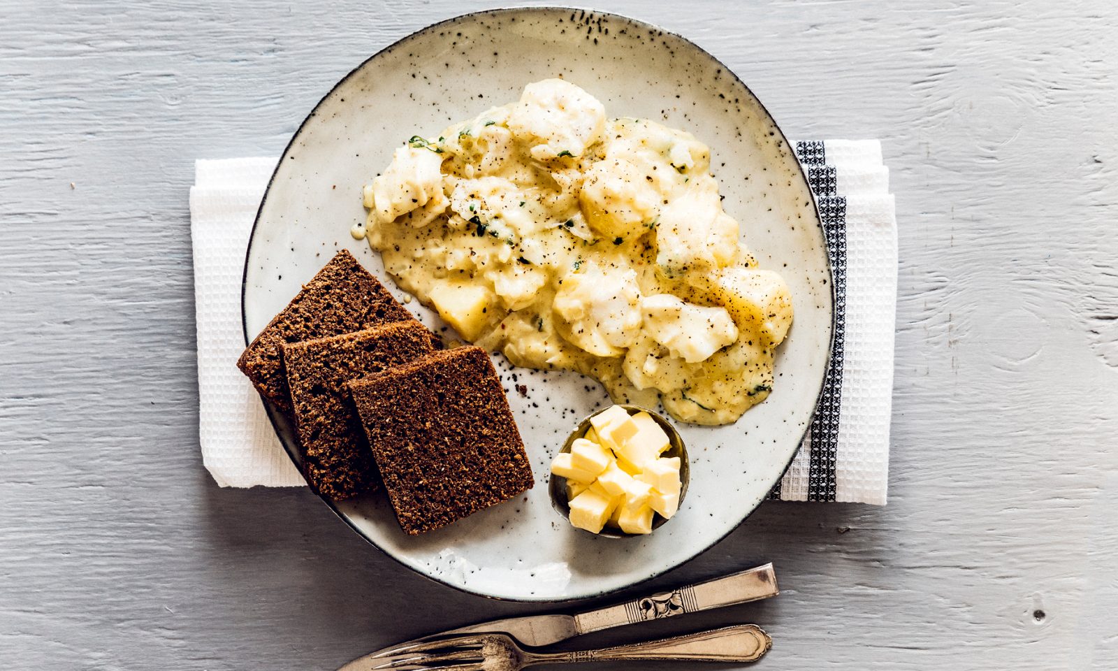 600 g soðin ýsa eða þorskur